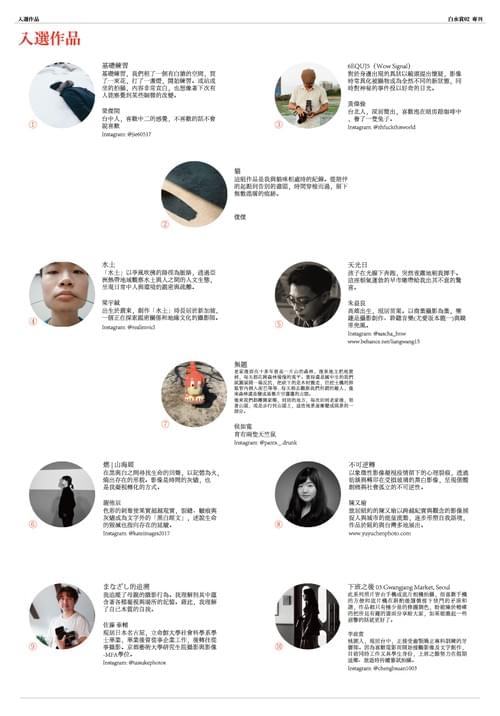 特刊發行同時於1/10~2/8 白水、小影廊、造影所在舉行三位得主個展,2/21~3/8 白水、小影廊、造影所在舉行入選者聯展。