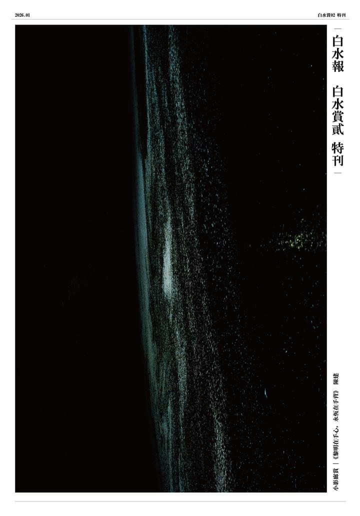 1/10由白水、小影廊、造影所在聯合發行白水報白水賞02特刊,本特刊刊登第二屆徵件活動白水賞02中得獎者、入選者的作品,白水賞02得獎者為: 小影廊賞 陳建 /《黎明在手心,永恆在手背》、造影所在賞 凌文滔 /《A Case of Eclosion》與白水賞 寺田健人 /《Lliving with My Imaginary Wife and Little Girl》,入選者29名: 林庭綺、薛穎琦、郝威爾、林芮緹、張景、賴東序、許皓鈞、佐藤 泰輔、梁宇鋮、胡英祈、賴良琪、黃沛森、紀建廷、李濡妘、趙寬、鄧璞、僕僕、石嘉憲、朱益良、趙湘瑋、Miv4t、謝侑辰、侯如寬、王裕銘、張凱傑、李政萱、梁傑閔、陳又瑜、陳森有、黃偉倫、李明憲、湯景光。