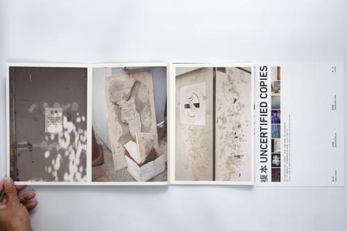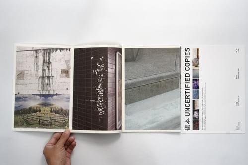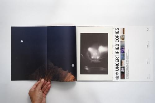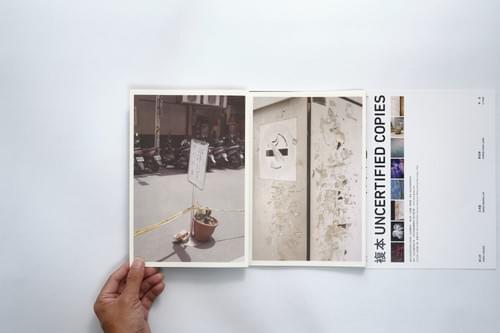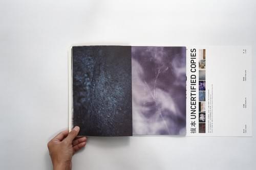「複本」是白水邀請藝術家陳以軒、王湘靈、鄭詔蓉與李浩共同參與的出版與展覽計畫,每位藝術家編輯自己的攝影作品,共同組合成一本圖集。並且,邀請每一位讀者與觀眾用自己的手參與編輯、翻摺、裝訂並重新定義這本刊物,一起來完成無數「複本」。